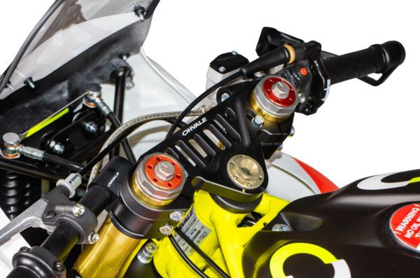 Front braking system: Single disc Ø 180mm. Formula monoblock radial caliper (4 pistons D24). Sintered brake pads. Axial master cylinder with integrated tank & braided steel hose