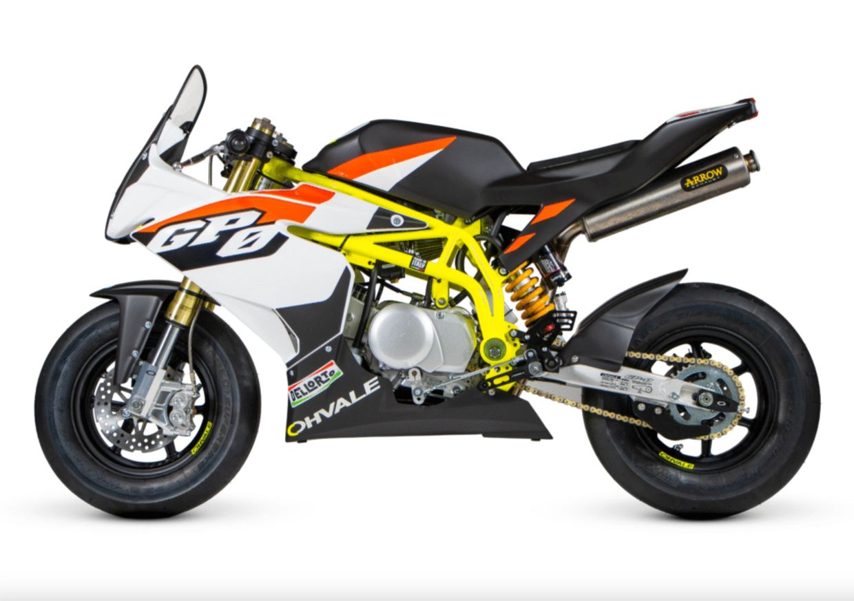 Tyres: Tubeless Pirelli slick, Front 100/80 -10’’, Rear 120/80-10’’